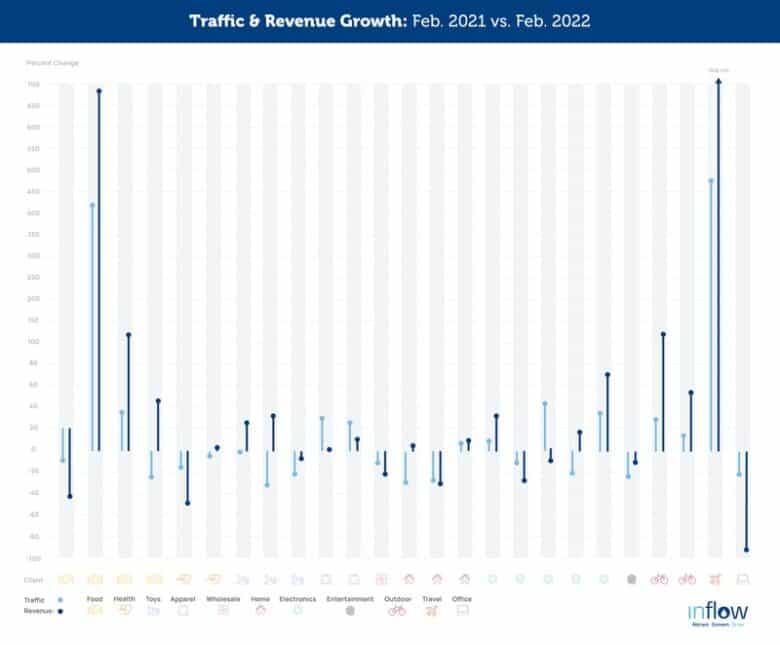 Interestingly, the same percentage of clients saw increases in eCommerce sales in 2021–22. However, they weren’t the same clients.